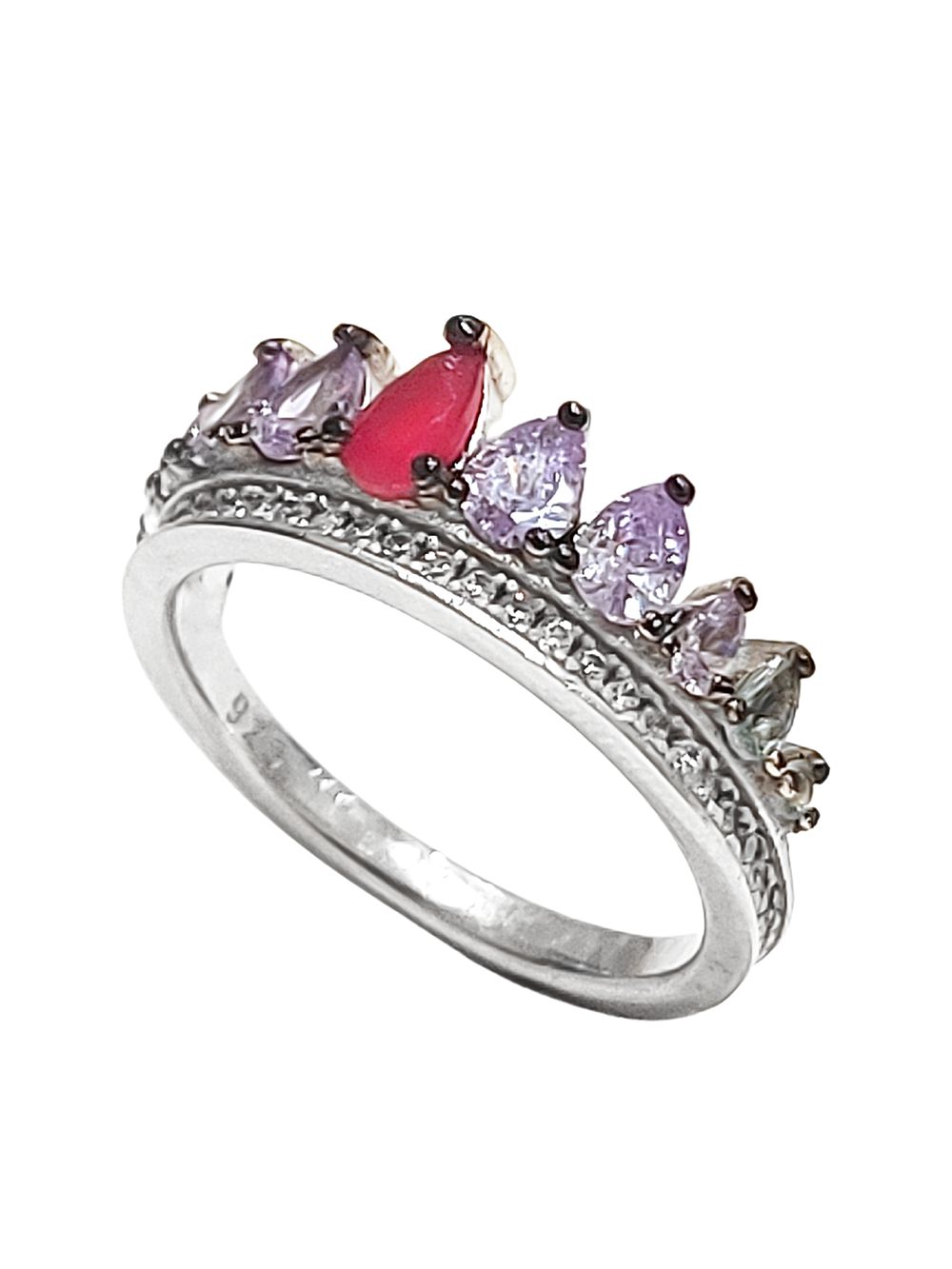 Anel coroa em prata 925 com banho de ródio e zircônias