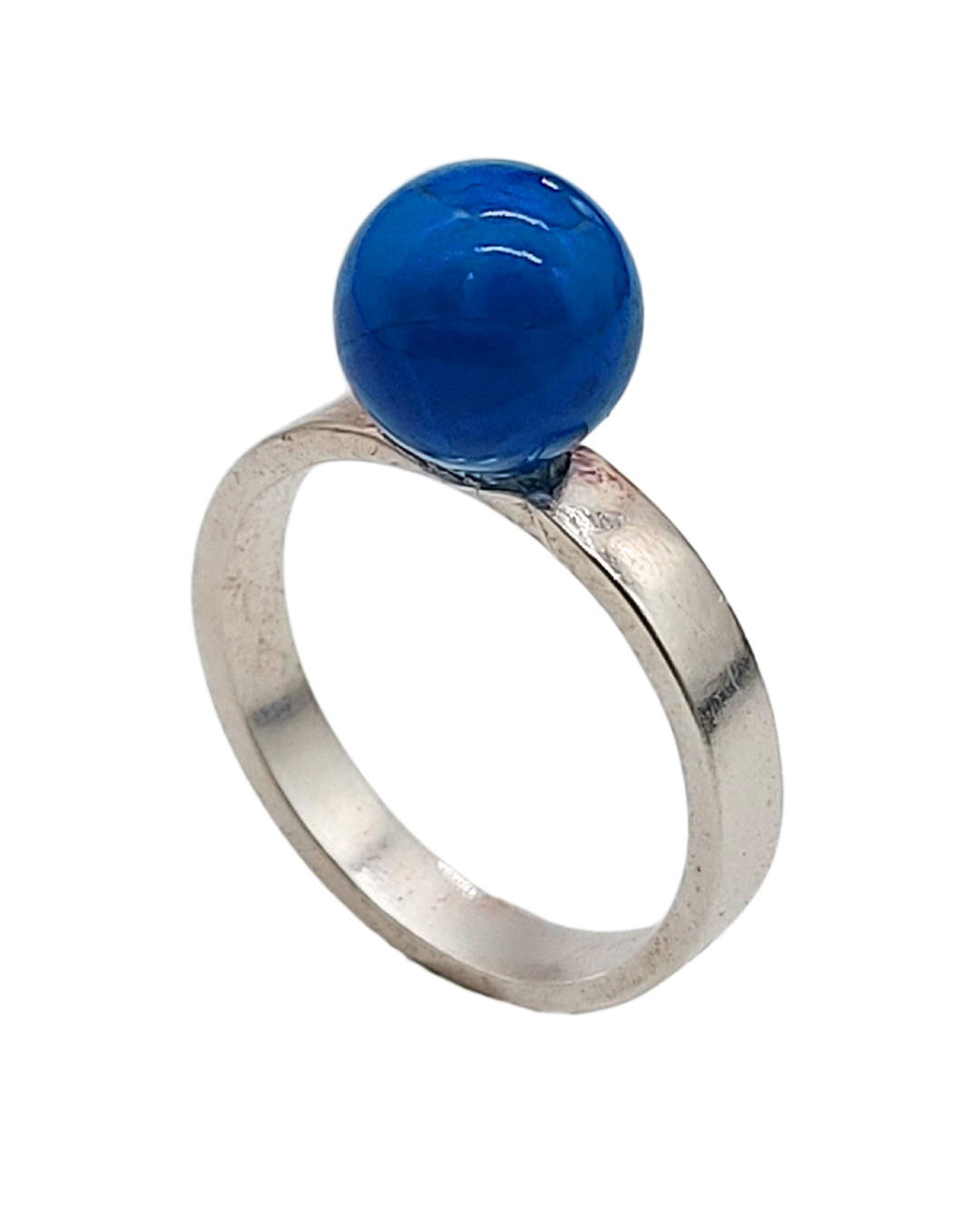 Anel em prata 925 com design minimalista, adornado por uma esfera de azul de pedra reconstituída. Uma joia versátil que une simplicidade e estilo, perfeita para compor diferentes combinações no dia a dia.