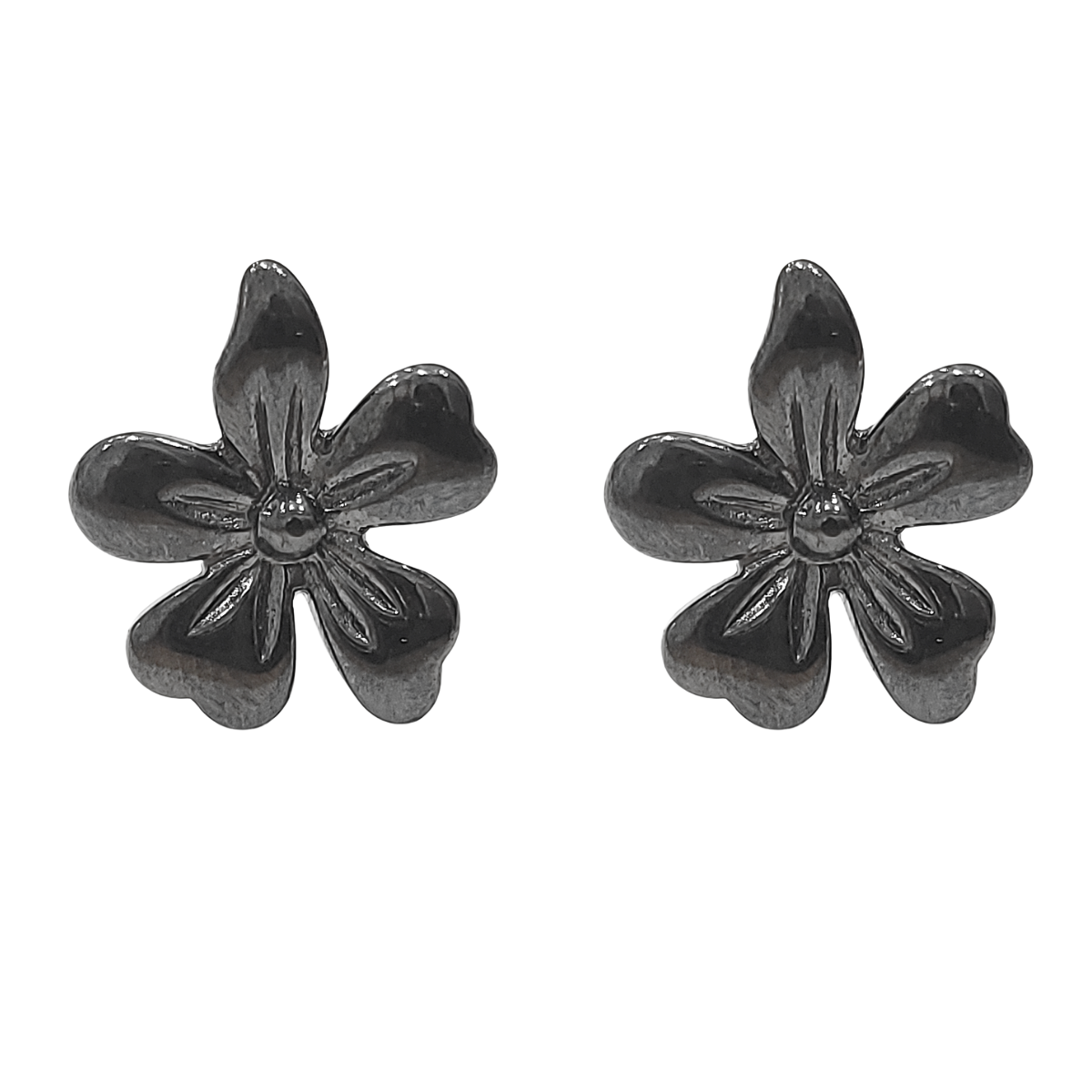 Brinco de Flor de Prata com Banho de Ouro Negro