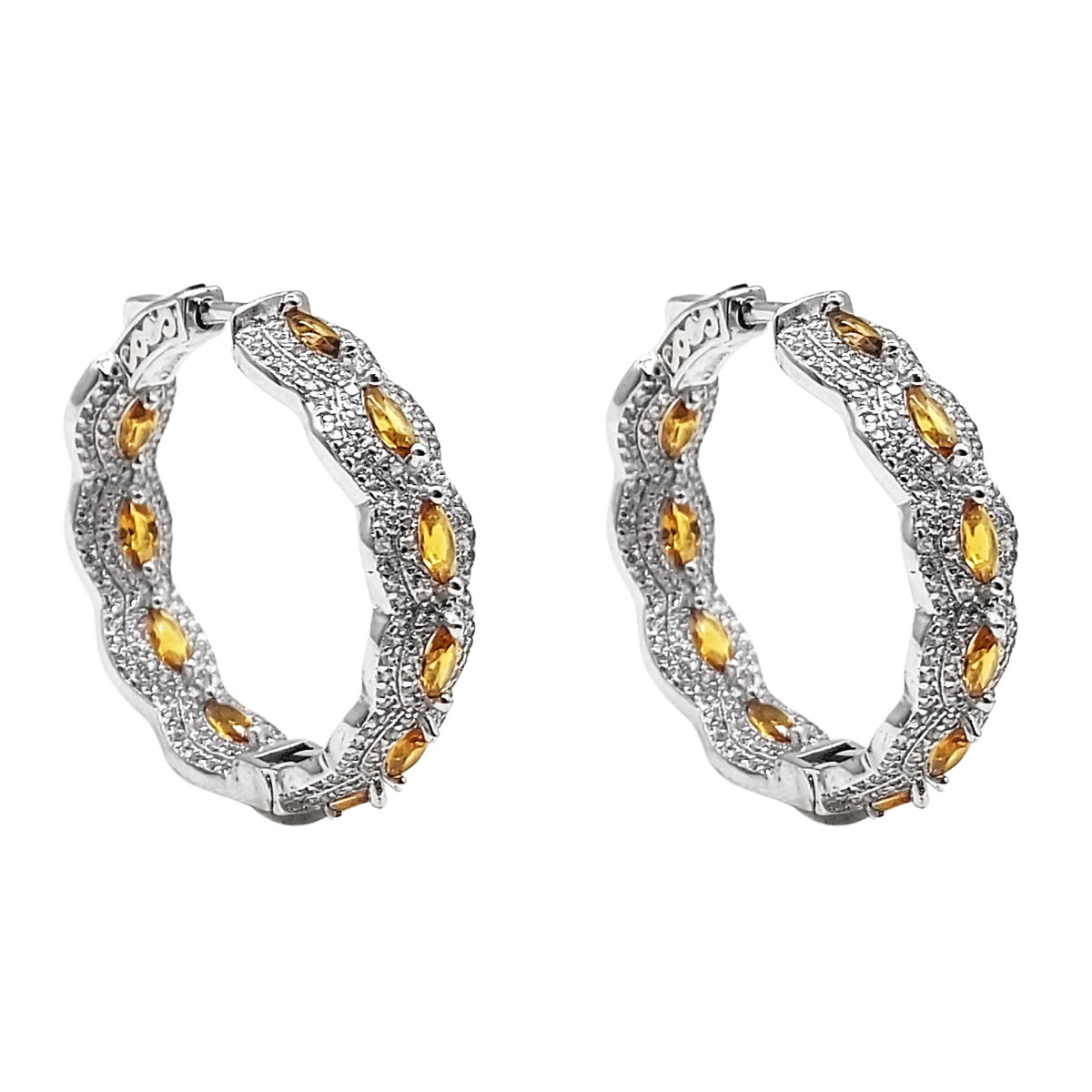 Encante-se com a sofisticação destas argolas em Prata 925, que combinam um design entrelaçado com o brilho vibrante do citrino. As delicadas zircônias cravejadas ao longo da joia realçam ainda mais a beleza e o brilho. Fecho seguro com design confortável e firme para uso diário ou ocasiões especiais.
