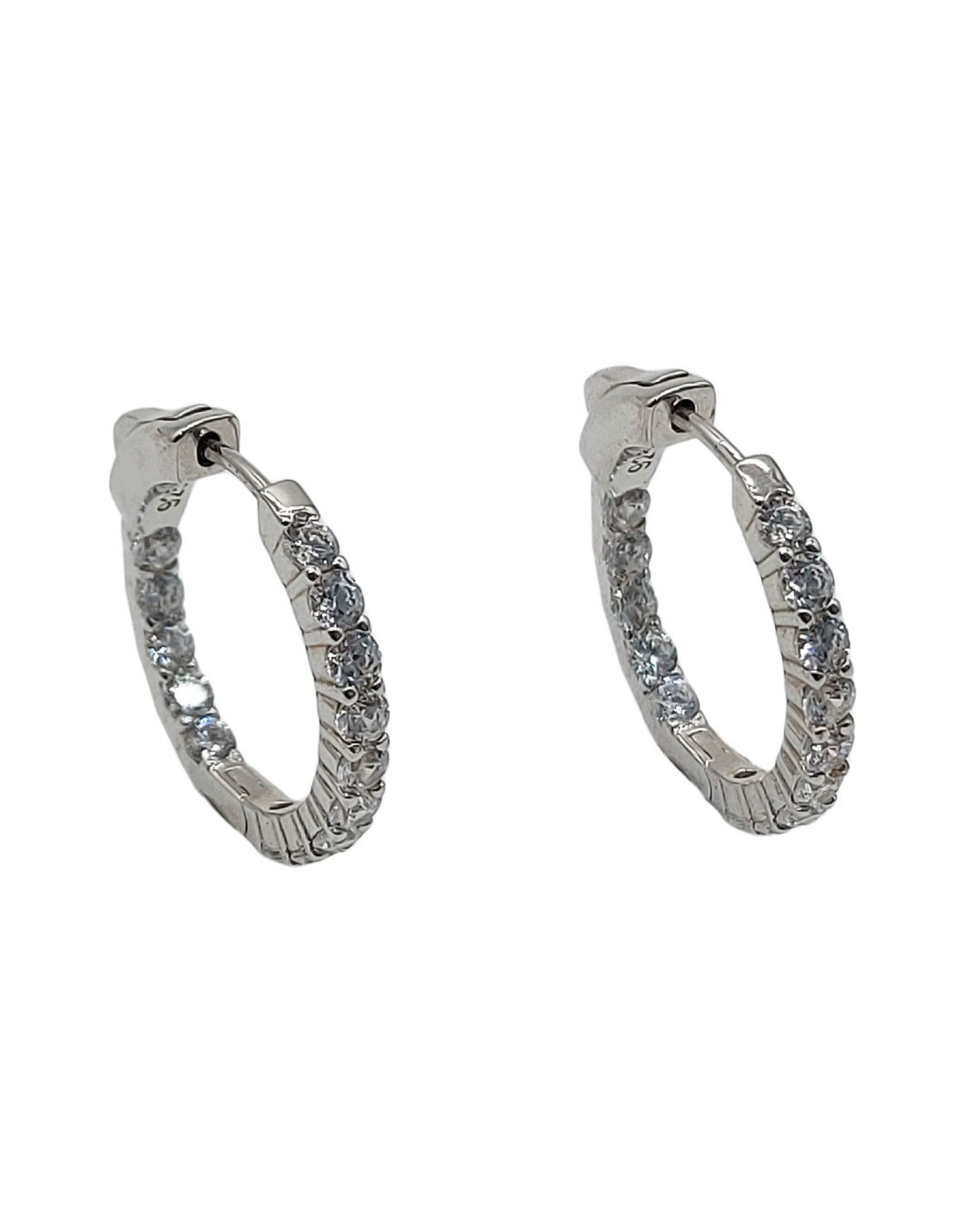 Brinco de Prata de Argola Pequena com Zircônias Brancas