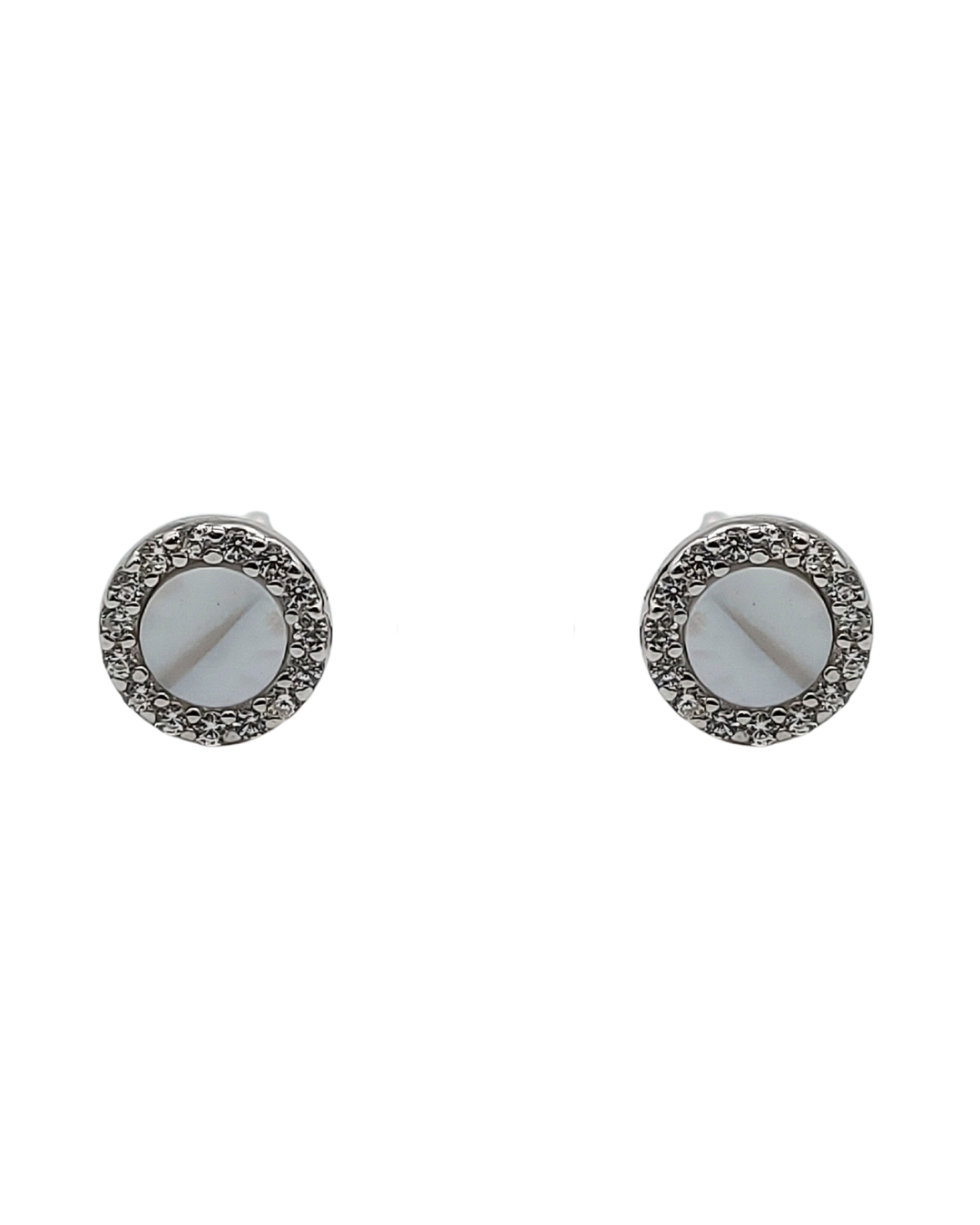 Brinco em prata 925 com centro de madrepérola e borda cravejada de zircônias, criando um brilho delicado e elegante. Um modelo clássico e versátil, perfeito para iluminar o visual no dia a dia ou em ocasiões especiais.
