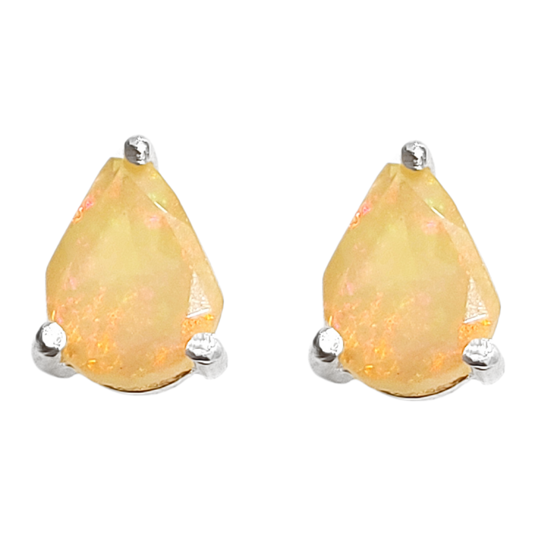 O brinco de prata com opala amarela combina sofisticação e um toque vibrante. A pedra, com seus reflexos dourados e nuances delicadas, se destaca no design pequeno e minimalista, criando uma joia elegante e versátil.