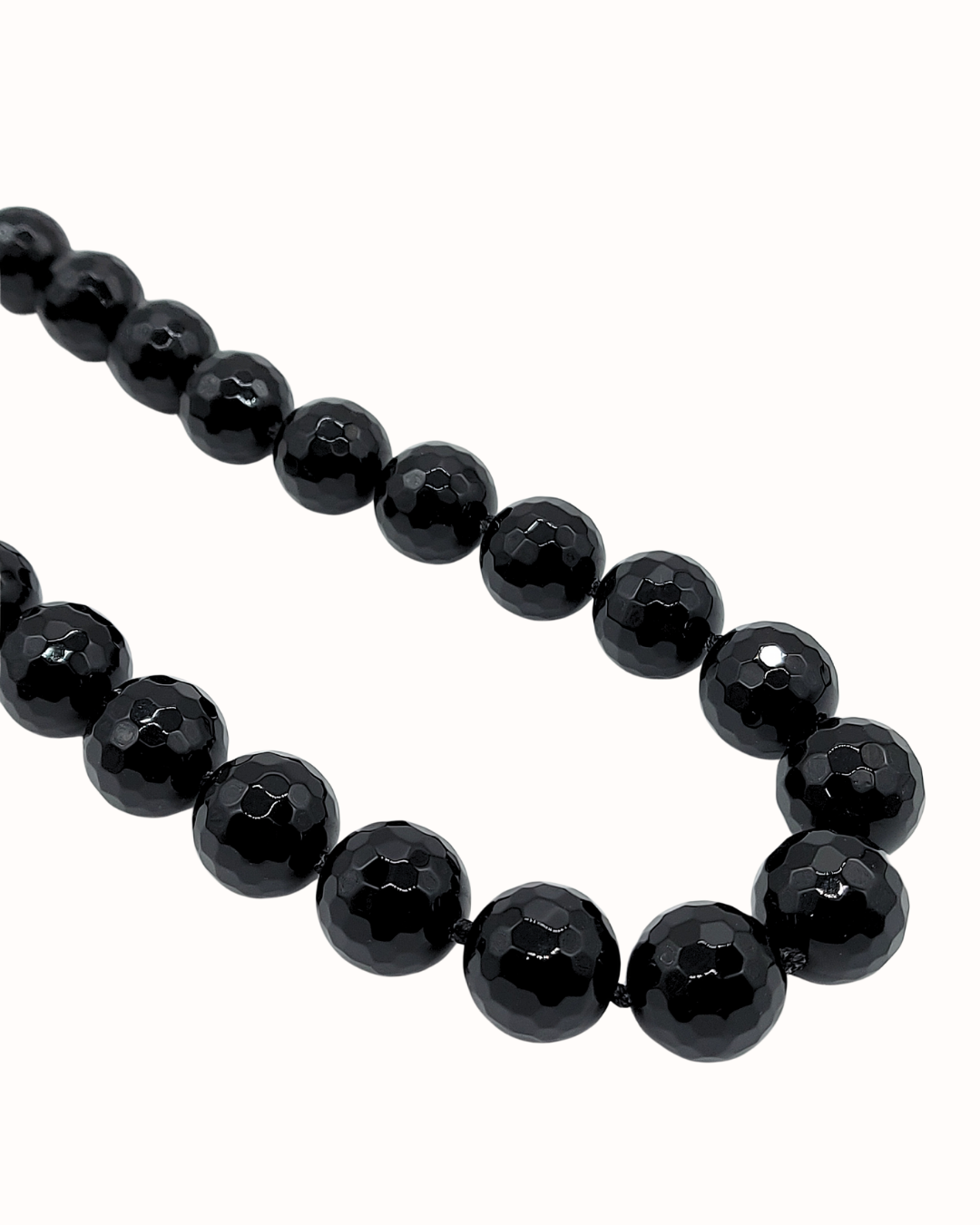 Colar de pedras naturais de ônix preto com acabamento facetado que proporciona brilho elegante e sofisticado. Com 49 cm de comprimento, possui fecho de ímã que garante praticidade e segurança no uso. Ideal para compor looks clássicos ou contemporâneos.