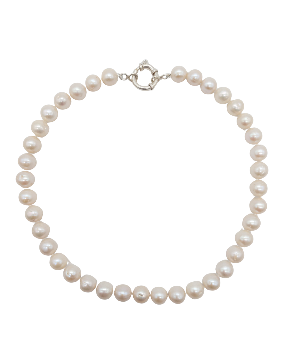 Colar de 47 cm composto por pérolas brancas , selecionadas por seu brilho suave e formato elegante. A peça é finalizada com um fecho bóia em prata 925, que adiciona charme e segurança ao design clássico. Um acessório sofisticado e atemporal, perfeito para realçar qualquer look.
