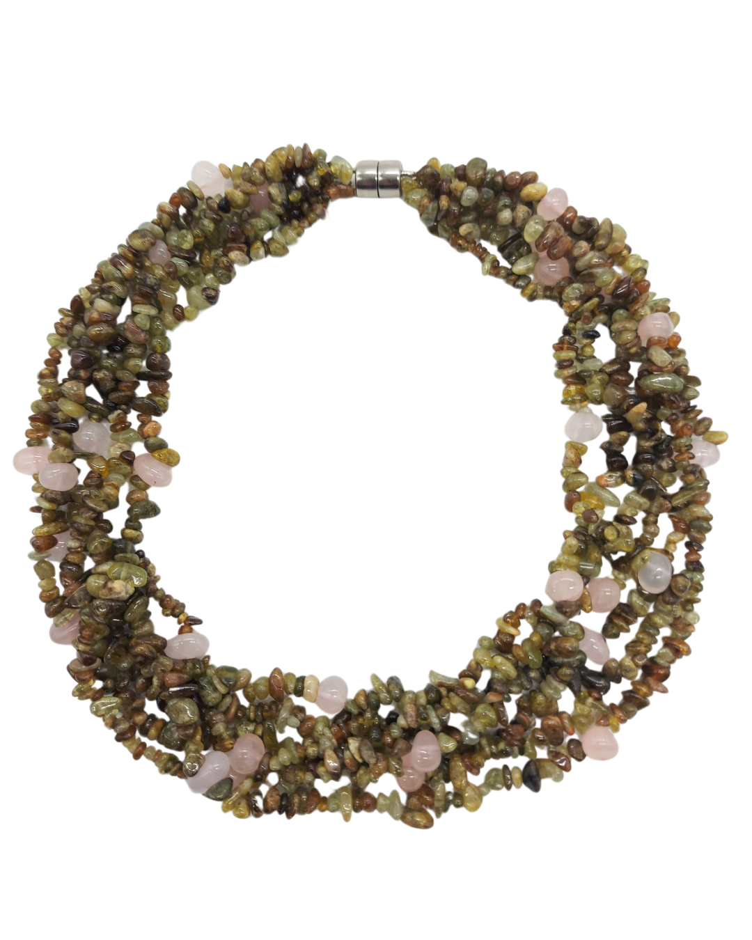 Colar de 6 Fios de Peridoto e Quartzo Rosa