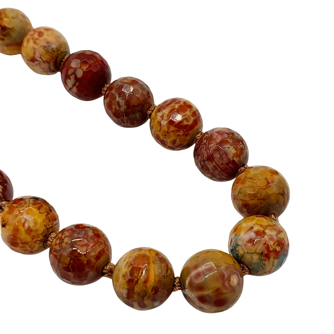 Colar de jaspe com 50 cm, composto por esferas em tons terrosos e nuances naturais que tornam a joia única. O acabamento é elegante, com fecho boia banhado em ouro branco, garantindo praticidade e um toque sofisticado ao visual.