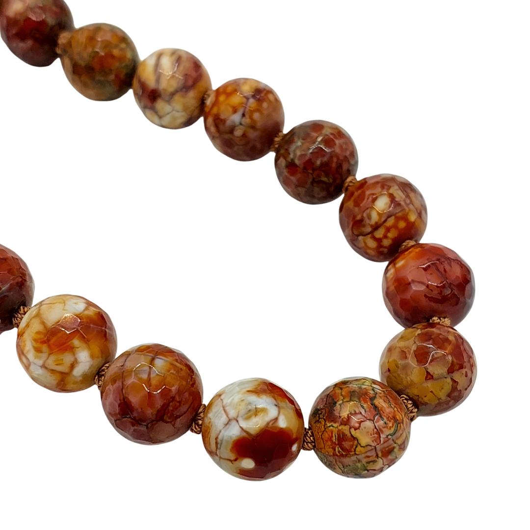 Colar de jaspe com 47,5 cm, composto por esferas em tons terrosos e nuances naturais que tornam a joia única. O acabamento é elegante, com fecho de ímã banhado em ouro branco, garantindo praticidade e um toque sofisticado ao visual.