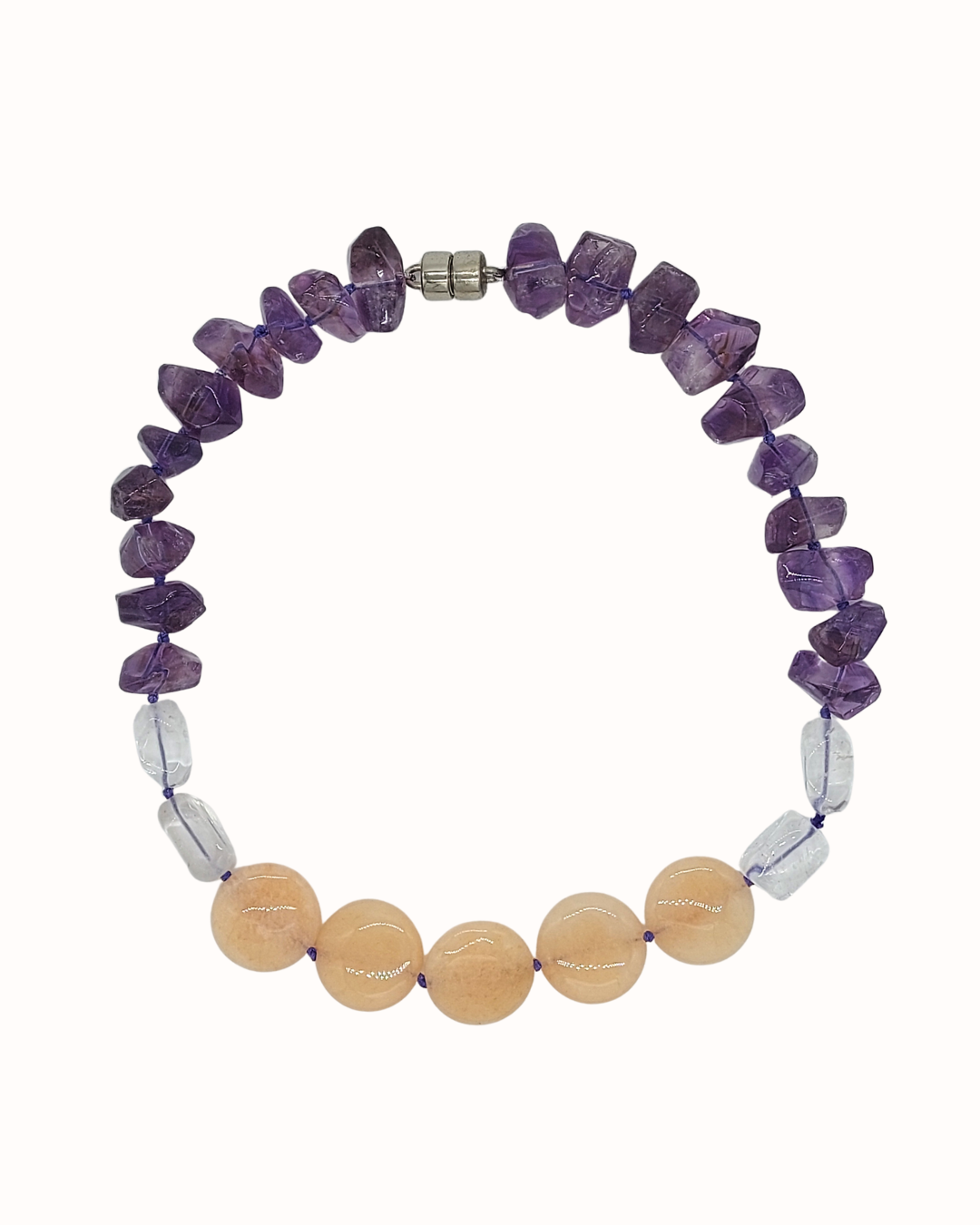 Colar Curto de Ametista, Jade e Cristal com Fecho de Ímã