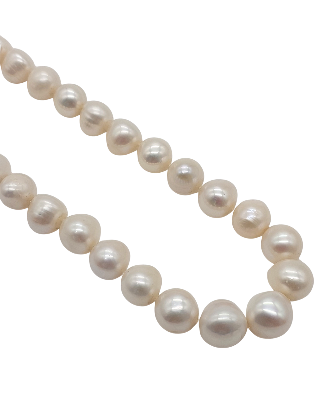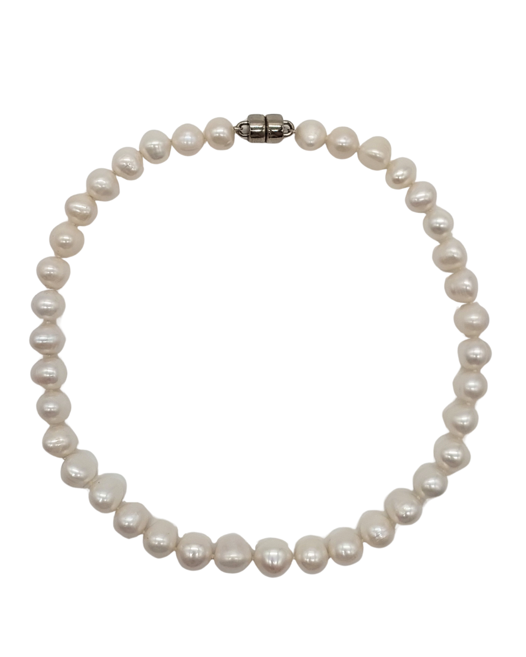 Colar de 50 cm composto por pérolas naturais de formato orgânico e brilho suave, que conferem elegância atemporal à peça. Possui fecho banhado a ouro branco, garantindo segurança e um acabamento sofisticado. Uma joia versátil, ideal para uso diário ou composições clássicas.