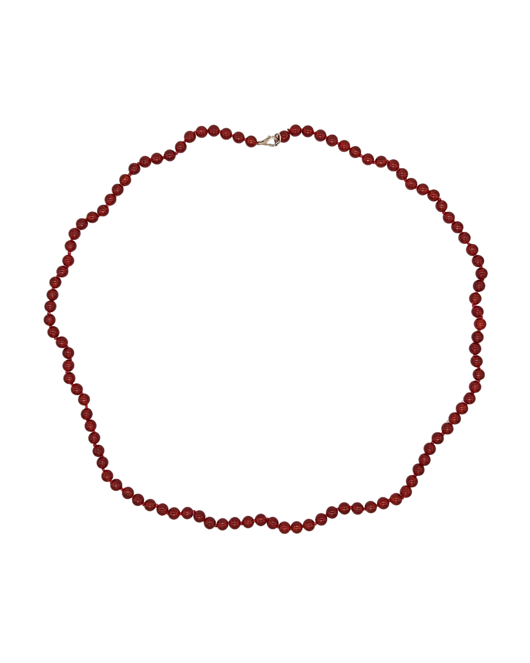Colar de 72cm feito com contas esféricas de ágata vermelha, trazendo um visual marcante e elegante. O fecho em metal garante praticidade no uso, enquanto o comprimento alongado permite versatilidade na composição de diferentes looks — seja usado sozinho ou em mix de colares.