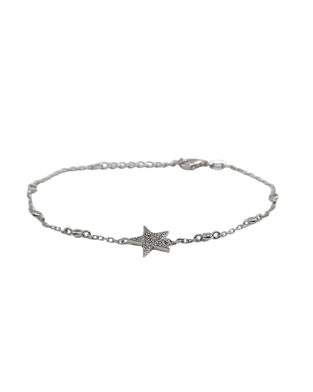 Pulseira de Prata com Estrela e Zircônias Brancas